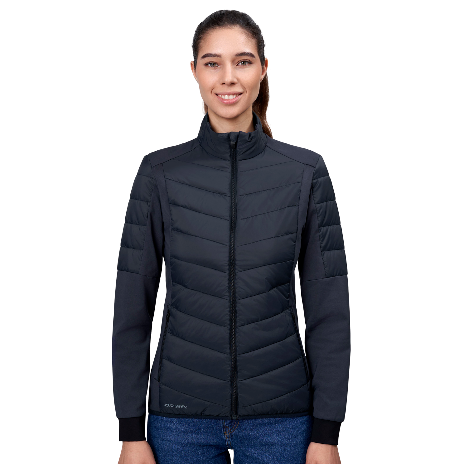 Vi har fundet Geyser By Id Dame Hybridjakke – Navy – fra Geyser By Id hos dansk.dk i kategorien Hybridjakke. Sporty komfortabel hybrid jakke. Front, bag og ærmer i let quiltet vindtæt kvalitet. Vattering er THERMOLITE®T-DOWN lavet af recycled plastikflasker. Jakken er kombineret med en lækker blød 4-vejs stretch kvalitet, for optimale komfort og bevægelsesfrihe